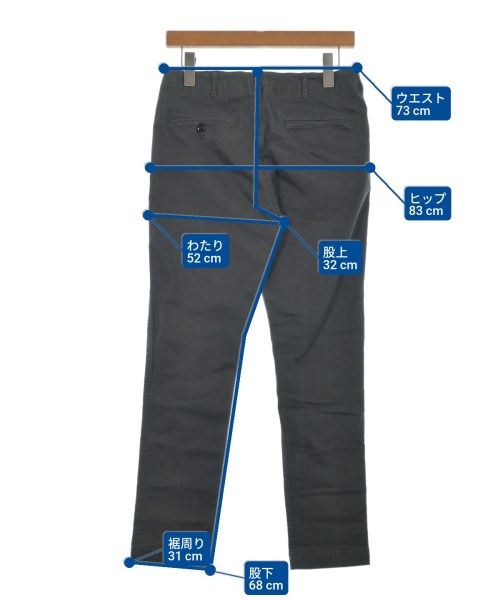 [Brand] BEAMS [Type] Men's [Condition] Rank: B Details: Overall rubbed [Color] Gray [Size] S [Actual size] Waist:73cm Hem circumference: 31cm Hip:83cm Crossing:52cm Rise: 32cm Inseam:68cm [Material] 95% cotton, 5% polyurethane, (separate fabric) 100% cotton [Country of origin] Japan [Other details] Season: Spring-Summer Pockets: Yes Outside Pockets: 4 Translucency: None Fabric thickness: normal Lining: None Elasticity: Yes Gloss: None Opening and closing: zipper |