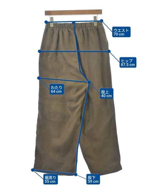 [Brand] Samansa Mos2 [Type] Women's [Condition] Rank: A [Color] Brown [size] F [Actual size] Waist: 70cm Hem circumference: 55cm Hip:87.5cm Crossing:64cm Rise: 40cm Inseam:59cm [Material] 96% polyester, 4% nylon [Country of origin] China [Comments] The waist can be adjusted using elastic or a drawstring. [Other details] Season: Spring-Summer Pockets: Yes Outside Pockets: 2 Translucency: None Fabric thickness: normal Lining: None Elasticity: None Gloss: None Opening and closing: None Pattern: Plain Length: Long length |