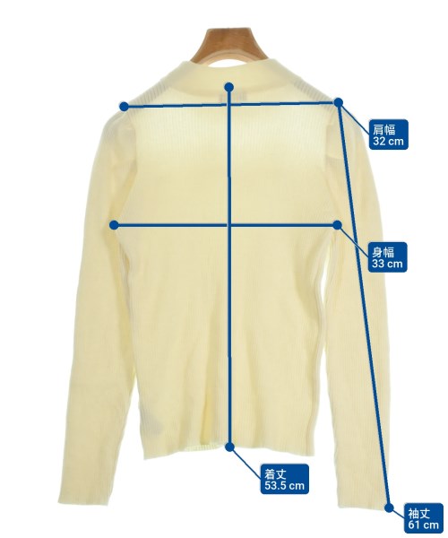 [Brand] EARTH MUSIC&ECOLOGY [Type] Women's [Condition] Rank: B Details: Fluffing throughout [Color] Ivory [size] F [Actual size] Width: 33cm Shoulder width: 32cm Sleeve length:61cm Length: 53.5cm Material: 48% rayon, 30% polyester, 22% nylon, (tulle part) 100% nylon, (lace part) 100% polyester [Country of origin] China [Other details] Season: Autumn-Winter Pocket: None Translucency: Yes Fabric thickness: normal Lining: None Elasticity: Yes Gloss: None Opening and closing: None Neck: Other Sleeve length: long sleeve Pattern: Plain Gauge: Medium Gauge |
