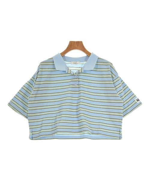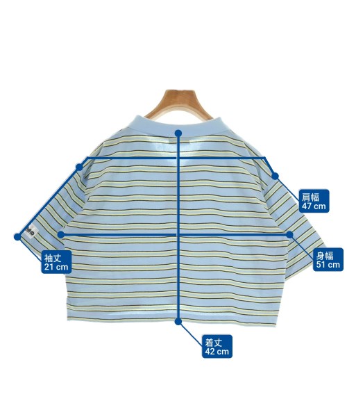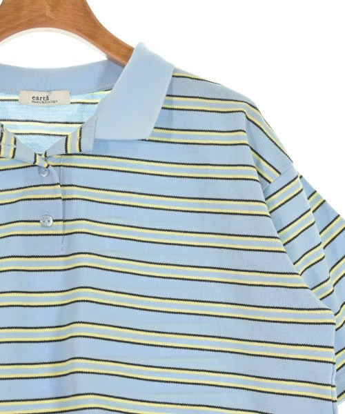 [Brand] EARTH MUSIC&ECOLOGY [Type] Women's [Condition] Rank: B [Color] Light blue x yellow x black (border) [size] F [Actual size] Width: 51cm Shoulder width: 47cm Sleeve length:21cm Length: 42cm Material: 66% polyester, 34% cotton, (rib) 97% polyester, 3% polyurethane [Country of origin] China [Other details] Season: Spring-Summer Pocket: None Translucency: None Fabric thickness: normal Lining: None Elasticity: Yes Gloss: None Opening and closing: button |