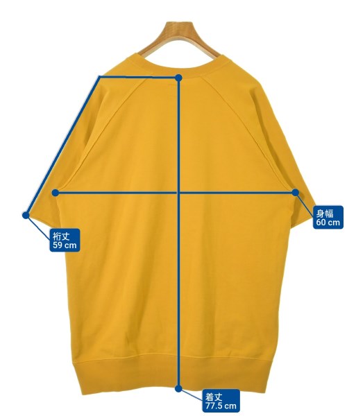 [Brand] Needles [Type] Men's [Condition] Rank: B [Color] Yellow [Size] S [Actual size] Width: 60cm Sleeve length: 59cm Length: 77.5cm [Material] 100% cotton [Country of origin] Japan [Other details] Season: Spring-Summer Pocket: None Translucency: None Fabric thickness: normal Lining: None Elasticity: Yes Gloss: None Opening and closing: None Sleeve length: half sleeve Pattern: printed logo |