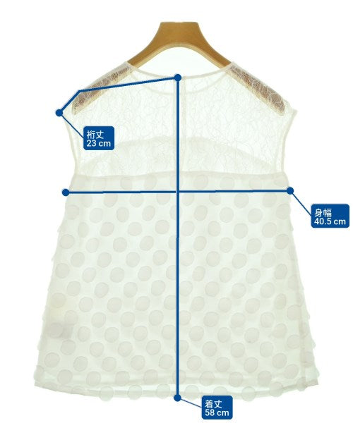 [Brand] GRACE CONTINENTAL [Type] Women's [Condition] Rank: B [Color] White (lace) [Size] 38 (Medium) [Actual size] Width: 40.5cm Sleeve length: 23cm Length: 58cm [Material] (Outer and lining) 100% polyester, (Lace) 100% nylon [Country of origin] Japan [Other details] Season: Spring-Summer Pocket: None Translucency: Yes Fabric thickness: thin Lining: None Elasticity: None Gloss: None Opening and closing: button |