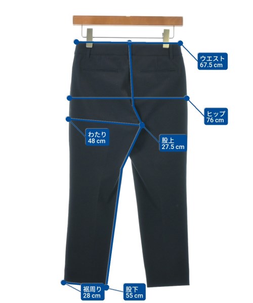 [Brand] INDIVI [Type] Women's [Condition] Rank: B Details: Fluffing [Color] Navy [Size] 36 (S rank) [Actual size] Waist: 67.5cm Hem circumference: 28cm Hip:76cm Crossing:48cm Rise: 27.5cm Inseam: 55cm Material: 65% polyester, 31% rayon, 4% polyurethane [Country of origin] Japan [Other details] Season: Spring-Summer Pockets: Yes Outside Pockets: 4 Translucency: None Fabric thickness: normal Lining: None Elasticity: Yes Gloss: None Opening and closing: zipper |