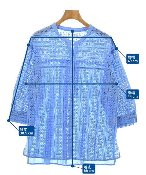 [Brand] INDIVI [Type] Women's [Condition] Rank: A [Color] Blue [Size] 12 (approximately XL) [Actual size] Width: 44cm Shoulder width: 49cm Sleeve length: 38.5cm Length:66cm [Material] 100% cotton, (embroidery) 100% polyester [Country of origin] China [Other details] Season: Spring-Summer Pocket: None Translucency: None Fabric thickness: normal Lining: None Elasticity: None Gloss: None Opening and closing: button Sleeve length: short sleeve Pattern: patterned |