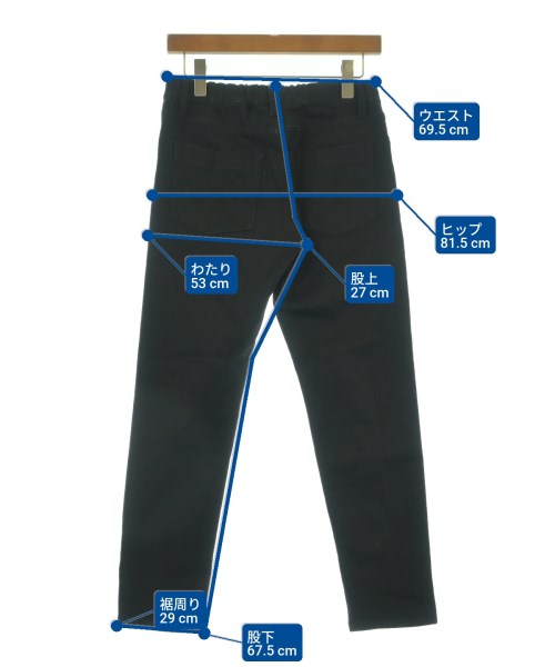 [Brand] INDIVI [Type] Women's [Condition] Rank: B [Color] Black [Size] 36 (S rank) [Actual size] Waist: 69.5cm Hem circumference: 29cm Hip:81.5cm Crossing:53cm Rise:27cm Inseam:67.5cm [Material] 61% cotton, 26% polyester, 11% rayon, 2% polyurethane [Country of origin] China [Comment] The waist is adjustable with elastic. [Other details] Season: All season Pockets: Yes Outside Pockets: 5 Translucency: None Fabric thickness: normal Lining: None Elasticity: Yes Gloss: None Opening and closing: zipper Pattern: Plain Length: Long length |
