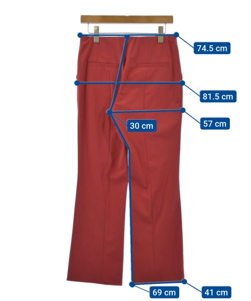 [Brand] INDIVI [Type] Women's [Condition] Rank: B [Color] Red [Size] 40 (Large) [Actual size] Waist: 74.5cm Hem circumference: 41cm Hip:81.5cm Crossing:57cm Rise: 30cm Inseam:69cm [Material] 84% polyester, 16% polyurethane [Country of origin] Vietnam [Other details] Season: Spring-Summer Pockets: Yes Outside Pockets: 4 Translucency: None Fabric thickness: normal Lining: None Elasticity: Yes Gloss: None Opening and closing: zipper |