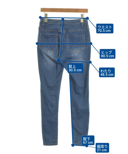 [Brand] FRIPIER [Type] Women's [Condition] Rank: B [Color] Blue (denim) [size] F [Actual size] Waist: 70.5cm Hem circumference: 21cm Hip:80.5cm Crossing: 48.5cm Rise: 30.5cm Inseam:67cm [Material] 60% cotton, 25% polyester, 13% recycled fiber (cellulose), 2% polyurethane [Country of origin] China [Comments] The waist can be adjusted with a drawstring. [Other details] Season: All season Pockets: Yes Outside Pockets: 4 Translucency: None Fabric thickness: normal Lining: None Elasticity: Yes Gloss: None Opening and closing: zipper |