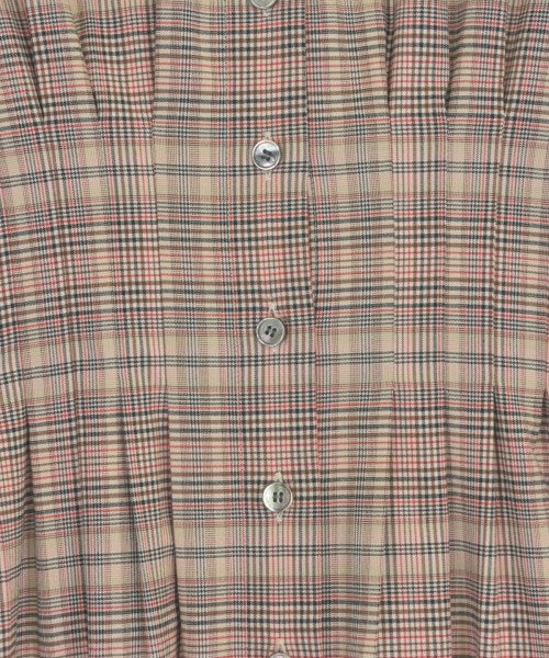 [Brand] heliopole [Type] Women's [Condition] Rank: B Details: Brand tag stained [Color] Beige x Pink x Brown etc. (Check) [Size] - (Medium) [Actual size] Width: 44cm Shoulder width: 49.5cm Sleeve length: 45cm Waist: 70cm Length: 128cm [Material] 63% polyester, 33% rayon, 4% polyurethane [Country of origin] Japan [Comment] This is a sample product. [Other details] Season: Spring-Summer Pocket: None Translucency: None Fabric thickness: normal Lining: None Elasticity: Yes Gloss: None Opening and closing: button |
