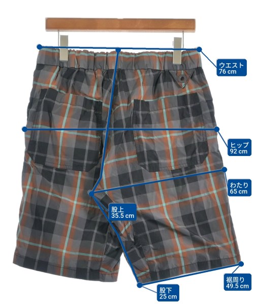 [Brand] White Mountaineering [Type] Men's [Condition] Rank: A [Color] Gray x Orange x Black etc. (check) [Size] 2 (Large) [Actual size] Waist:76cm Hem circumference: 49.5cm Hip:92cm Crossing:65cm Rise: 35.5cm Inseam: 25cm [Material] 100% polyester, (separate fabric) 100% cotton [Country of origin] Japan [Comment] The waist is adjustable with elastic. [Other details] Season: Spring-Summer Pockets: Yes Outside Pockets: 4 Translucency: None Fabric thickness: normal Lining: None Elasticity: None Gloss: None Opening and closing: None Pattern: patterned |