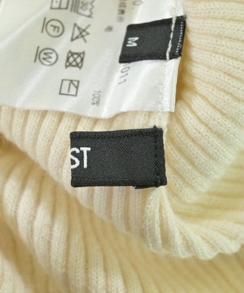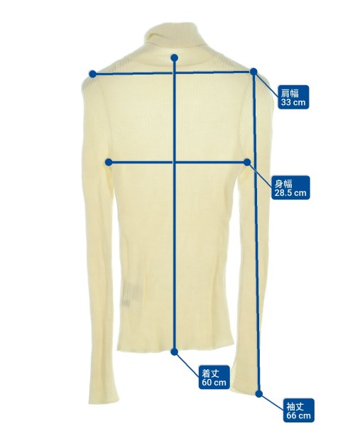 [Brand] PLST [Type] Women's [Condition] Rank: B Details: Rubbed [Color] Ivory [Size] M [Actual size] Width: 28.5cm Shoulder width: 33cm Sleeve length:66cm Length: 60cm [Material] 100% wool [Country of origin] China [Comment] A simple ribbed knit that can be coordinated with a wide range of styles. [Other details] Season: Autumn-Winter Pocket: None Translucency: Yes Fabric thickness: normal Lining: None Elasticity: Yes Gloss: None Opening and closing: None Neck: Turtleneck/High Neck Sleeve length: long sleeve Pattern: Plain Gauge: High Gauge |