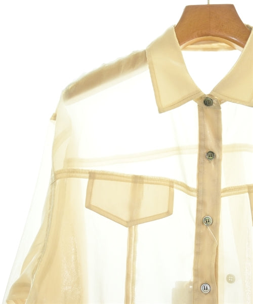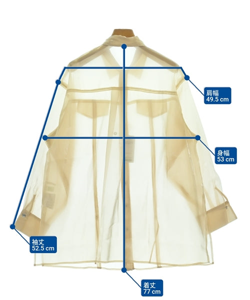 [Brand] KBF [Type] Women's [Condition] Rank: Like new [Color] Beige [size] F [Actual size] Width: 53cm Shoulder width: 49.5cm Sleeve length: 52.5cm Length:77cm [Material] 100% polyester [Country of origin] China [Other details] Season: Spring-Summer Pockets: Yes Outside Pockets: 2 Translucency: Yes Fabric thickness: normal Lining: None Elasticity: None Gloss: Yes Opening and closing: button |