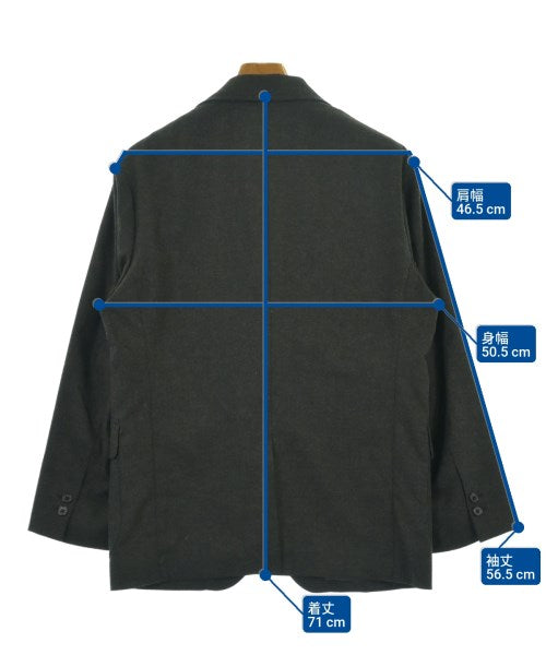 [Brand] green label relaxing [Type] Men's [Condition] Rank: B [Color] Dark gray [Size] S [Actual size] Width: 50.5cm Shoulder width: 46.5cm Sleeve length: 56.5cm Length: 71cm Material: 70% polyester, 19% rayon, 9% wool, 2% polyurethane, (lining) 53% rayon, 47% polyester [Country of origin] Vietnam [Other details] Season: Autumn-Winter Pockets: 3 outside pockets, 1 inside pocket Translucency: None Fabric thickness: normal Lining: Yes Elasticity: Yes Gloss: None Opening and closing: button |