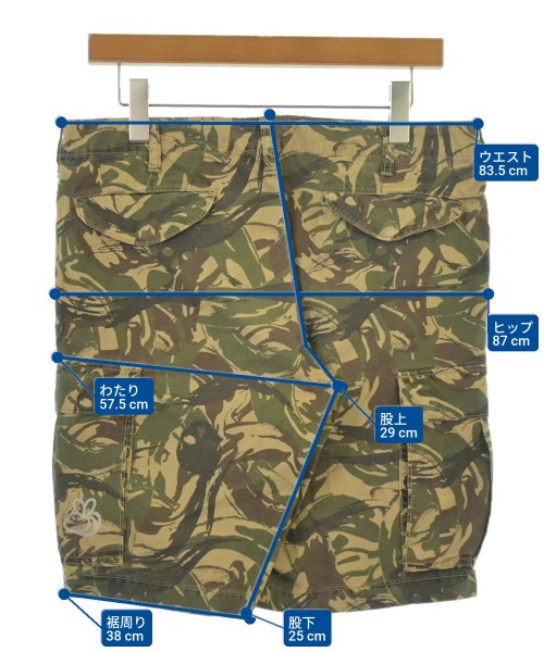 [Brand] HYSTERIC GLAMOUR [Type] Men's [Condition] Rank: B [Color] Beige x khaki x brown etc. (all-over pattern) [Size] M [Actual size] Waist: 83.5cm Hem circumference: 38cm Hip:87cm Crossing: 57.5cm Rise:29cm Inseam: 25cm [Material] 100% cotton [Country of origin] Japan [Other details] Season: Spring-Summer Pockets: Yes Outside Pockets: 6 Translucency: None Fabric thickness: normal Lining: None Elasticity: None Gloss: None Opening and closing: zipper Pattern: Plain |