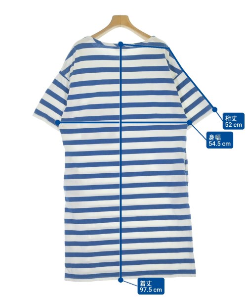 [Brand] beautiful people [Type] Women's [Condition] Rank: B Details: Some stains [Color] White x Blue (Border) [Size] 36 (S rank) [Actual size] Width: 54.5cm Sleeve length: 52cm Length: 97.5cm [Material] 100% cotton [Country of origin] Japan [Other details] Season: Spring-Summer Pockets: Yes Outside Pockets: 2 Translucency: Yes Fabric thickness: normal Lining: None Elasticity: Yes Gloss: None Opening and closing: None Neck: crew neck Sleeve length: short sleeve Pattern: patterned |