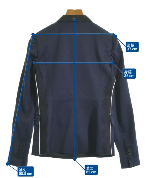 [Brand] PINKO [Type] Women's [Condition] Rank: A [Color] Navy x Black [Size] 34 (approximately XS) [Actual size] Width: 35cm Shoulder width: 37cm Sleeve length: 58.5cm Length: 62cm Material: 95% polyester, 5% polyurethane; (separate fabric) 100% polyester; (lining) 65% acetate, 35% rayon [Country of origin] Italy [Other details] Season: Spring-Summer Pockets: Yes Outside Pockets: 2 Translucency: None Fabric thickness: normal Lining: Yes Elasticity: Yes Gloss: None Opening and closing: button |
