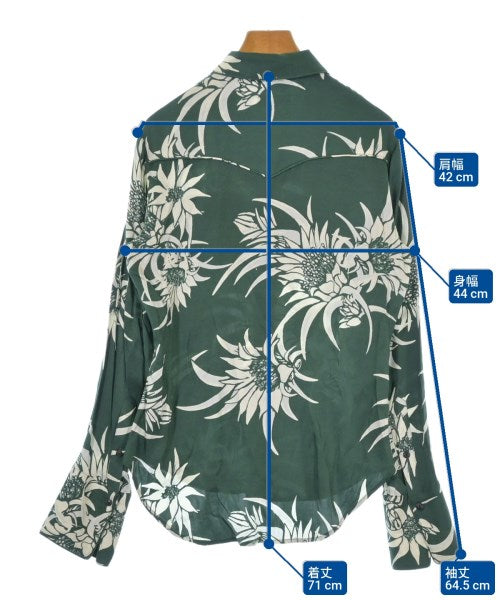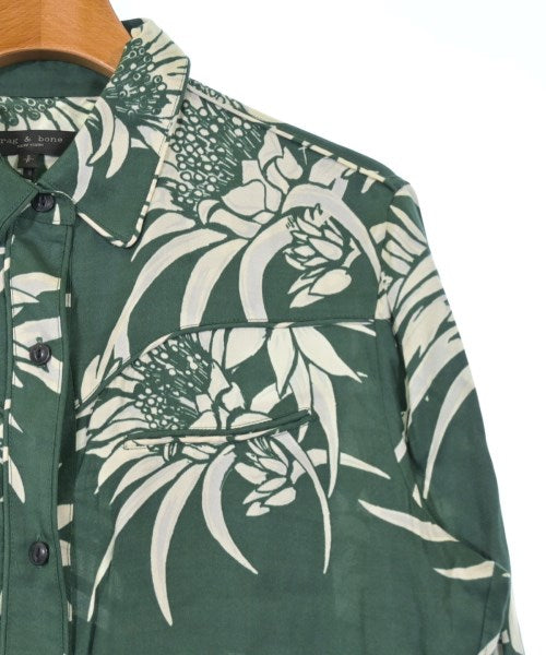 [Brand] rag & bone [Type] Women's [Condition] Rank: B [Color] Green x White (all-over pattern) [Size] S [Actual size] Width: 44cm Shoulder width: 42cm Sleeve length: 64.5cm Length: 71cm [Material] 55% silk, 45% rayon [Country of origin] China [Other details] Season: Spring-Summer Pocket: None Translucency: None Fabric thickness: normal Lining: None Elasticity: None Gloss: None Opening and closing: button Sleeve length: long sleeve Pattern: patterned |