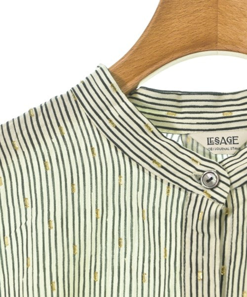 [Brand] JOURNAL STANDARD L'ESSAGE [Type] Women's [Condition] Rank: B Details: Overall rubbed [Color] Beige x Black x Gold (all-over pattern) [size] F [Actual size] Width: 65cm Sleeve length: 37cm Length: 70cm [Material] 99% rayon, 1% polyester [Country of origin] Vietnam [Other details] Season: Spring-Summer Pocket: None Translucency: Yes Fabric thickness: thin Lining: None Elasticity: None Gloss: None Opening and closing: button |