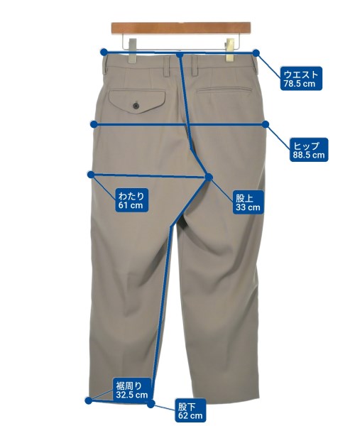 [Brand] kolor [Type] Men's [Condition] Rank: Like new [Color] Gray beige [Size] 1 (S size) [Actual size] Waist: 78.5cm Hem circumference: 32.5cm Hip:88.5cm Crossing:61cm Rise: 33cm Inseam:62cm [Material] 55% polyester, 45% wool, (lining) 100% cupra [Country of origin] Japan [Other details] Season: Spring-Summer Pockets: Yes Outside Pockets: 4 Translucency: None Fabric thickness: normal Lining: Yes Elasticity: None Gloss: None Opening and closing: zipper Pattern: Plain |