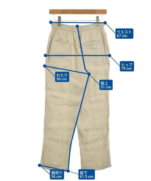 [Brand] SLOBE IENA [Type] Women's [Condition] Rank: B [Color] Beige [Size] 38 (Medium) [Actual size] Waist:67cm Hem circumference: 36cm Hip:79cm Crossing:56cm Rise: 31cm Inseam:61.5cm [Material] 56% linen, 42% rayon, 2% polyurethane [Country of origin] Vietnam [Comments] The waist can be adjusted using elastic or a drawstring. [Other details] Season: Spring-Summer Pockets: Yes Outside Pockets: 4 Translucency: None Fabric thickness: normal Lining: None Elasticity: Yes Gloss: None |