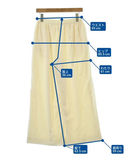 [Brand] UNITED ARROWS [Type] Women's [Condition] Rank: B Details: Some stains [Color] Ivory [Size] 38 (Medium) [Actual size] Waist:69cm Hem circumference: 59cm Hip:85.5cm Crossing:61cm Rise: 36cm Inseam: 63.5cm [Material] 90% cotton, 10% triacetate, (lining) 100% polyester [Country of origin] Japan [Comments] The waist can be adjusted with a drawstring. [Other details] Season: Spring-Summer Pockets: Yes Outside Pockets: 2 Translucency: None Fabric thickness: normal Lining: Yes Elasticity: None Gloss: None Opening and closing: None |