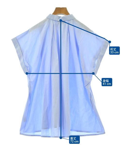 [Brand] UNITED ARROWS [Type] Women's [Condition] Rank: A [Color] Blue [size] F [Actual size] Width: 41cm Sleeve length: 33cm Length: 72cm [Material] 100% cotton [Country of origin] Japan [Other details] Season: Spring-Summer Pocket: None Translucency: Yes Fabric thickness: normal Lining: None Elasticity: None Gloss: None Opening and closing: button |