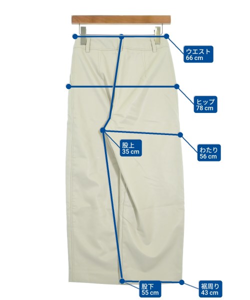 [Brand] TOMORROWLAND [Type] Women's [Condition] Rank: B [Color] Off-white [Size] 34 (approximately XS) [Actual size] Waist:66cm Hem circumference: 43cm Hip:78cm Crossing:56cm Rise: 35cm Inseam: 55cm [Material] Synthetic leather [Country of origin] Japan [Other details] Season: Autumn-Winter Pockets: Yes Outside Pockets: 2 Translucency: None Fabric thickness: normal Lining: None Elasticity: None Gloss: None Opening and closing: zipper |