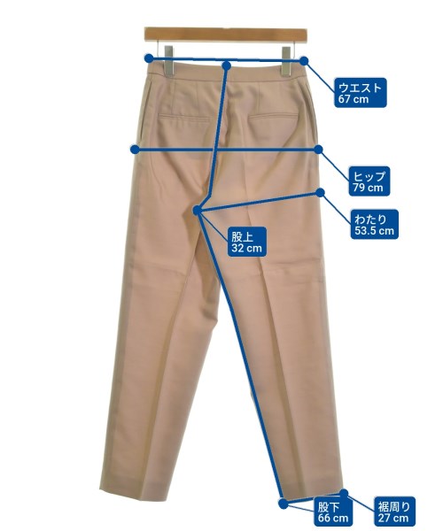 [Brand] TOMORROWLAND [Type] Women's [Condition] Rank: A [Color] Pink beige [Size] 36 (S rank) [Actual size] Waist:67cm Hem circumference: 27cm Hip:79cm Crossing: 53.5cm Rise: 32cm Inseam: 66cm [Material] 85% wool, 15% silk [Country of origin] Japan [Other details] Season: Autumn-Winter Pockets: Yes Outside Pockets: 4 Translucency: None Fabric thickness: normal Lining: None Elasticity: None Gloss: None Opening and closing: zipper |