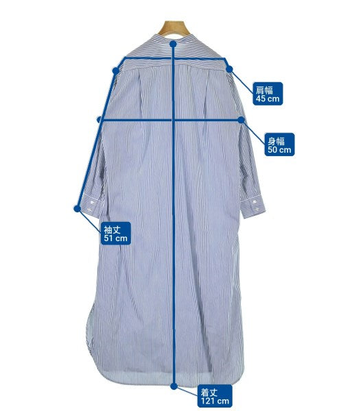 [Brand] URBAN RESEARCH [Type] Women's [Condition] Rank: B Details: Stain around the neck [Color] Blue x white (stripes) [size] F [Actual size] Width: 50cm Shoulder width: 45cm Sleeve length: 51cm Length: 121cm [Material] 76% cotton, 21% nylon, 3% polyurethane [Country of origin] China [Other details] Season: Spring-Summer Pockets: Yes Outside Pockets: 2 Translucency: Yes Fabric thickness: normal Lining: None Elasticity: Yes Gloss: None Opening and closing: button |