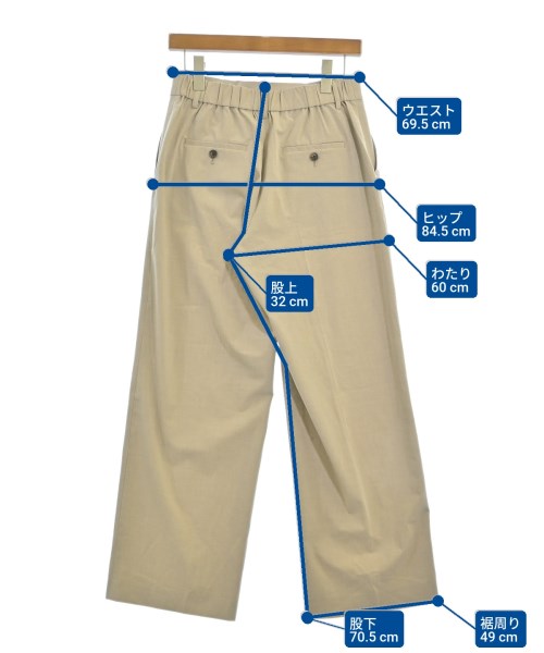 [Brand] BEAUTY&YOUTH UNITED ARROWS [Type] Women's [Condition] Rank: A [Color] Beige [Size] L [Actual size] Waist: 69.5cm Hem circumference: 49cm Hip:84.5cm Crossing:60cm Rise: 32cm Inseam:70.5cm Material: 65% polyester, 28% rayon, 7% polyurethane [Country of origin] China [Comment] The waist is adjustable with elastic. [Other details] Season: Spring-Summer Pockets: Yes Outside Pockets: 4 Translucency: None Fabric thickness: normal Lining: None Elasticity: Yes Gloss: None Opening and closing: zipper |