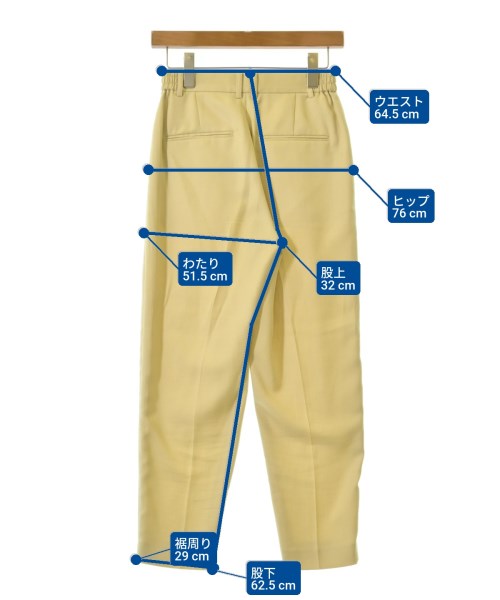 [Brand] BEAUTY&YOUTH UNITED ARROWS [Type] Women's [Condition] Rank: A [Color] Yellow [Size] S [Actual size] Waist: 64.5cm Hem circumference: 29cm Hip:76cm Crossing: 51.5cm Rise: 32cm Inseam: 62.5cm [Material] (Outer and lining) 100% polyester [Country of origin] Vietnam [Comment] The waist is adjustable with elastic. [Other details] Season: Spring-Summer Pockets: Yes Outside Pockets: 4 Translucency: None Fabric thickness: normal Lining: Yes Elasticity: None Gloss: None Opening and closing: zipper |