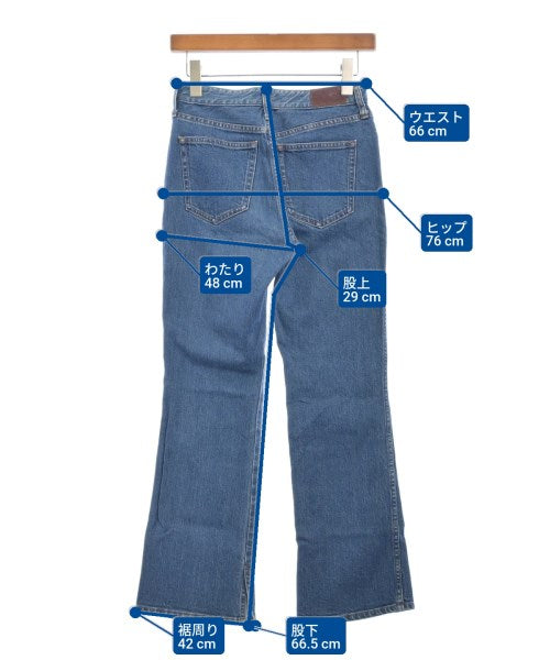 [Brand] green label relaxing [Type] Women's [Condition] Rank: B Details: Overall rubbed [Color] Blue (denim) [Size] 36 (S rank) [Actual size] Waist:66cm Hem circumference: 42cm Hip:76cm Crossing:48cm Rise:29cm Inseam: 66.5cm [Material] 99% cotton, 1% polyurethane [Country of origin] China [Other details] Season: All season Pockets: Yes Outside Pockets: 5 Translucency: None Fabric thickness: normal Lining: None Elasticity: Yes Gloss: None Opening and closing: zipper |