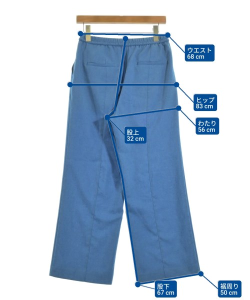 [Brand] green label relaxing [Type] Women's [Condition] Rank: B [Color] Blue [Size] 40 (M) [Actual size] Waist:68cm Hem circumference: 50cm Hip:83cm Crossing:56cm Rise: 32cm Inseam:67cm [Material] 80% polyester, 20% acetate [Country of Origin] Bangladesh [Comments] The waist can be adjusted using elastic or a drawstring. [Other details] Season: Spring-Summer Pockets: Yes Outside Pockets: 4 Translucency: None Fabric thickness: normal Lining: None Elasticity: None Gloss: None Opening and closing: None Pattern: Plain |