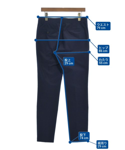 [Brand] JUN HASHIMOTO [Type] Men's [Condition] Rank: B [Color] Navy [Size] 2 (Medium) [Actual size] Waist:79cm Hem circumference: 29cm Hip:86cm Crossing:55cm Rise:29cm Inseam:74cm [Material] 100% polyester [Country of origin] Japan [Other details] Season: Spring-Summer Pockets: Yes Outside Pockets: 4 Translucency: None Fabric thickness: normal Lining: None Elasticity: None Gloss: None Opening and closing: zipper |