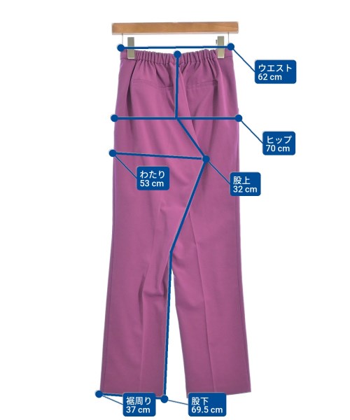 [Brand] Dou Dou [Type] Women's [Condition] Rank: A 【color: pink [Size] 36 (S rank) [Actual size] Waist:62cm Hem circumference: 37cm Hip:70cm Crossing:53cm Rise: 32cm Inseam: 69.5cm [Material] 90% polyester, 10% polyurethane [Country of origin] Korea [Comment] The waist is adjustable with elastic. [Other details] Season: Spring-Summer Pockets: Yes Outside Pockets: 2 Translucency: None Fabric thickness: normal Lining: None Elasticity: Yes Gloss: None Opening and closing: None |