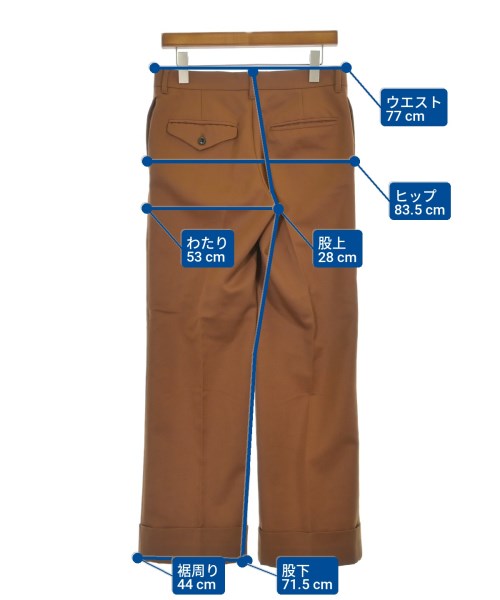 [Brand] TOGA [Type] Women's [Condition] Rank: B [Color] Brown [Size] 36 (S rank) [Actual size] Waist:77cm Hem circumference: 44cm Hip:83.5cm Crossing:53cm Rise:28cm Inseam:71.5cm [Material] 100% wool, (lining) 100% cupra [Country of origin] Japan [Other details] Season: Autumn-Winter Pockets: Yes Outside Pockets: 4 Translucency: None Fabric thickness: normal Lining: Yes Elasticity: None Gloss: None Opening and closing: zipper Pattern: Plain Length: Long length |
