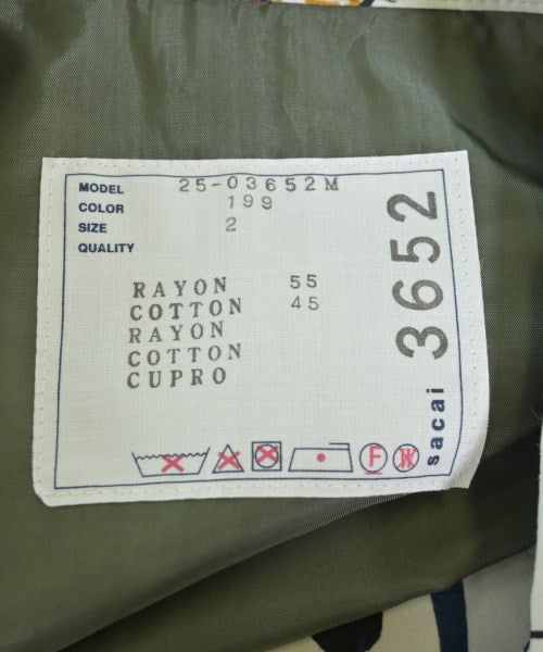 [Brand] sacai [Type] Men's [Condition] Rank: A [Color] White x blue x green etc. (all-over pattern) [Size] 2 (Medium) [Actual size] Width: 54cm Sleeve length: 50cm Length:69cm [Material] 55% rayon, 45% cotton, (lining) 100% cupra [Country of origin] Japan [Other details] Season: Spring-Summer Pockets: Yes Outside Pockets: 4 Translucency: Yes Fabric thickness: normal Lining: Yes Elasticity: None Gloss: None Opening and shutting: Double zip |