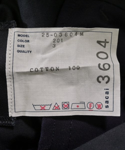 [Brand] sacai [Type] Men's [Condition] Rank: B [Color] Navy [Size] 3 (Large) [Actual size] Waist:84cm Hip:96cm Inseam:76cm Rise: 40cm Crossing:66cm Hem circumference: 42cm [Accessories] Belt [Material] 100% cotton [Country of origin] Japan [Comment] Model: Cotton Chino Pants Model number: 25-03604M [Other details] Season: Spring-Summer Pockets: Yes Outside Pockets: 6 Translucency: None Fabric thickness: normal Lining: None Elasticity: None Gloss: None Opening and closing: zipper Pattern: Plain Length: Long length |