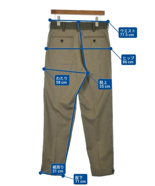 [Brand] sacai [Type] Men's [Condition] Rank: B [Color] Beige x Green x Brown (Gingham Check) [Size] 1 (S size) [Actual size] Waist: 77.5cm Hem circumference: 31cm Hip:86cm Crossing:58cm Rise: 35cm Inseam:71cm [Material] 100% wool, (separate fabric) 100% polyester, (lining) 100% cupra [Country of origin] Japan [Comment] The waist is adjustable with elastic. [Other details] Season: Autumn-Winter Pockets: Yes Outside Pockets: 4 Translucency: None Fabric thickness: normal Lining: Yes Elasticity: None Gloss: None Opening and closing: zipper Closure: Hook and eye Pattern: patterned Length: Long length |