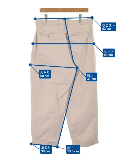 [Brand] BEAMS PLUS [Type] Men's [Condition] Rank: B [Color] Beige [Size] L [Actual size] Waist:83cm Hem circumference: 38cm Hip:89cm Crossing:68cm Rise: 37cm Inseam:59.5cm [Material] 98% cotton, 2% polyurethane, (separate fabric) 100% cotton [Country of origin] Japan [Other details] Season: Spring-Summer Pockets: Yes Outside Pockets: 5 Translucency: None Fabric thickness: normal Lining: None Elasticity: Yes Gloss: None Opening and closing: zipper |