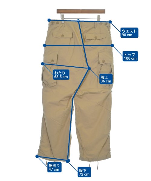 [Brand] BEAMS PLUS [Type] Men's [Condition] Rank: A [Color] Beige [Size] L [Actual size] Waist: 90cm Hem circumference: 47cm Hip:100cm Crossing:68.5cm Rise: 36cm Inseam:72cm [Material] 100% cotton [Country of origin] China [Other details] Season: Spring-Summer Pockets: Yes, 6 outside pockets, 2 inside pockets Translucency: None Fabric thickness: normal Lining: None Elasticity: None Gloss: None Opening and closing: zipper Pattern: Plain Length: Long length |