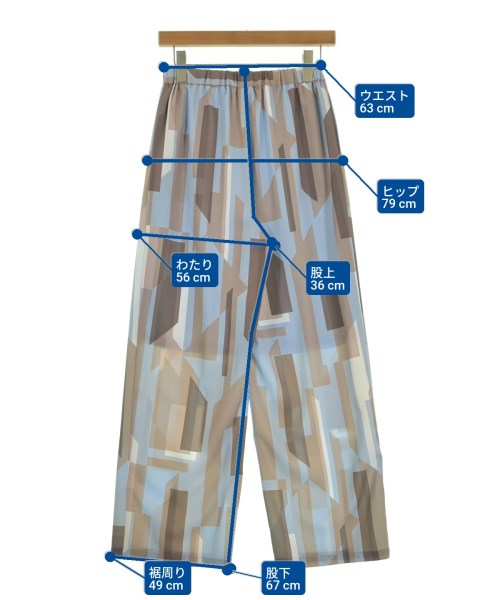 [Brand] COLLAGE GALLARDAGALANTE [Type] Women's [Condition] Rank: A [Color] Light blue x brown x white (all-over pattern) [size] F [Actual size] Waist:63cm Hem circumference: 49cm Hip:79cm Crossing:56cm Rise: 36cm Inseam:67cm [Material] (Outer and lining) 100% polyester [Country of origin] China [Comment] The waist is adjustable with elastic. [Other details] Season: Spring-Summer Pockets: Yes Outside Pockets: 2 Translucency: None Fabric thickness: normal Lining: Yes Elasticity: None Gloss: None Opening and closing: None |