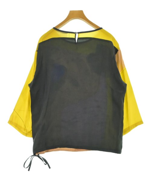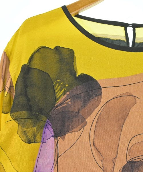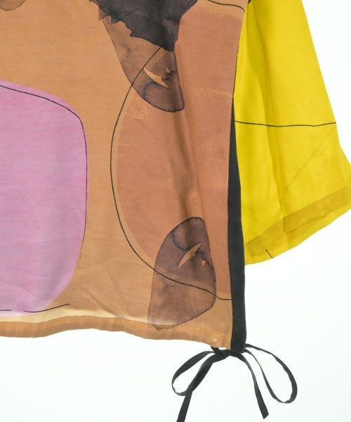 [Brand] KAMISHIMA CHINAMI [Type] Women's [Condition] Rank: B [Color] Yellow x Brown x Purple etc. [Size] 38 (Medium) [Actual size] Width: 56cm Shoulder width: 47cm Sleeve length: 41cm Length: 60.5cm Material: 53% rayon, 47% cupra, (back) 100% silk [Country of origin] Japan [Other details] Season: Spring-Summer Pocket: None Translucency: None Fabric thickness: normal Lining: None Elasticity: None Gloss: None Opening and closing: button Sleeve length: long sleeve Pattern: printed logo |