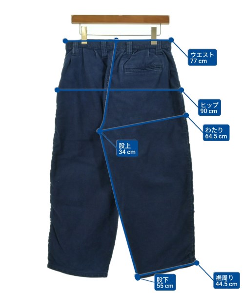 [Brand] PORTER CLASSIC [Type] Men's [Condition] Rank: B Details: Overall rubbed [Color] Navy [Size] XS [Actual size] Waist:77cm Hem circumference: 44.5cm Hip: 90cm Crossing:64.5cm Rise: 34cm Inseam: 55cm [Material] 100% cotton [Country of origin] Japan [Other details] Season: Spring-Summer Pockets: Yes External pockets: 3 Translucency: None Fabric thickness: normal Lining: None Elasticity: None Gloss: None Opening and closing: zipper Pattern: Plain Length: Long length |