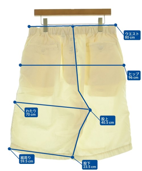 [Brand] nanamica [Type] Men's [Condition] Rank: Like new [Color] Cream [Size] 34 (approximately XL) [Actual size] Waist:80cm Hem circumference: 59.5cm Hip:96cm Crossing:70cm Rise: 40.5cm Inseam:23.5cm [Material] 60% cotton, 40% polyester [Country of origin] China [Comments] The waist can be adjusted using elastic or a drawstring. [Other details] Season: Spring-Summer Pockets: Yes Outside Pockets: 4 Translucency: Yes Fabric thickness: normal Lining: None Elasticity: None Gloss: None Opening and closing: zipper |