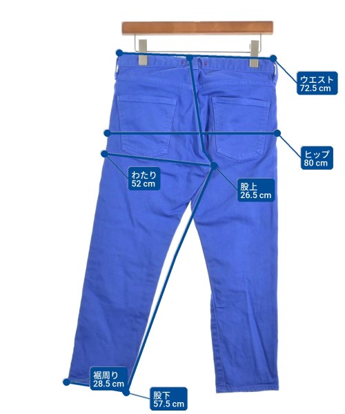 [Brand] RED CARD [Type] Women's [Condition] Rank: B [Color] Blue [Size] 23 (approximately XS) [Actual size] Waist: 72.5cm Hem circumference: 28.5cm Hip:80cm Crossing:52cm Rise: 26.5cm Inseam:57.5cm [Material] 98% cotton, 2% polyurethane [Country of origin] Japan [Other details] Season: Spring-Summer Pockets: Yes Outside Pockets: 5 Translucency: None Fabric thickness: normal Lining: None Elasticity: Yes Gloss: None Opening and closing: zipper |