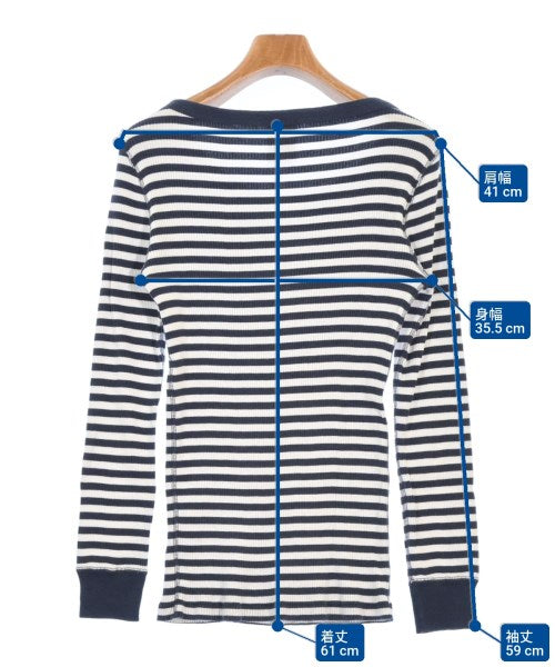 [Brand] HYKE [Type] Women's [Condition] Rank: B Details: Overall rubbed [Color] White x Navy (striped) [size] F [Actual size] Width: 35.5cm Shoulder width: 41cm Sleeve length:59cm Length: 61cm [Material] 100% cotton [Country of origin] Japan [Other details] Season: All season Pocket: None Translucency: Yes Fabric thickness: normal Lining: None Elasticity: Yes Gloss: None Opening and closing: None |