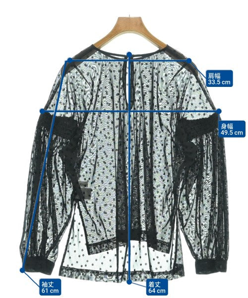 [Brand] Rie Miller [Type] Women's [Condition] Rank: B Details: Overall rubbed [Color] Black (dots) [Size] 38 (Medium) [Actual size] Width: 49.5cm Shoulder width: 33.5cm Sleeve length:61cm Length:64cm Material: 100% polyester, (flocked part) 50% nylon, 50% rayon [Country of origin] Japan [Other details] Season: Autumn-Winter Pocket: None Translucency: Yes Fabric thickness: thin Lining: None Elasticity: Yes Gloss: None Opening and closing: button |