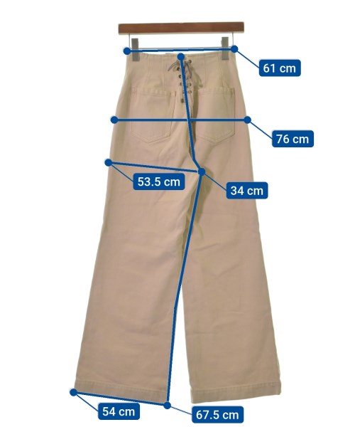 [Brand] Lily Brown [Type] Women's [Condition] Rank: B Details: There is stain around the hem. [Color] Beige [Size] 0 (S size) [Actual size] Waist:61cm Hem circumference: 54cm Hip:76cm Crossing: 53.5cm Rise: 34cm Inseam:67.5cm [Material] 100% cotton [Country of origin] China [Other details] Season: Spring-Summer Pockets: Yes Outside Pockets: 4 Translucency: None Fabric thickness: normal Lining: None Elasticity: None Gloss: None Opening and closing: button |