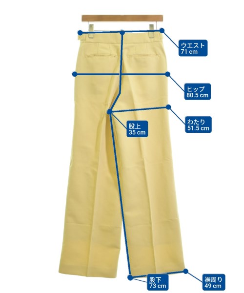 [Brand] ADAM ET ROPE [Type] Women's [Condition] Rank: B [Color] Yellow [Size] 38 (Medium) [Actual size] Waist:71cm Hem circumference: 49cm Hip:80.5cm Crossing: 51.5cm Rise: 35cm Inseam:73cm [Material] 100% polyester, (lining) 80% cupra, 20% polyester [Country of origin] Vietnam [Other details] Season: Spring-Summer Pockets: Yes Outside Pockets: 4 Translucency: None Fabric thickness: normal Lining: Yes Elasticity: None Gloss: None Opening and closing: zipper |