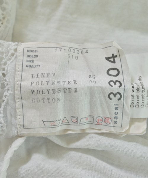 [Brand] sacai [Type] Women's [Condition] Rank: C Details: Overall rubbed, stained [Color] White (lace) [Size] 1 (S size) [Actual size] Width: 45cm Shoulder width: 30cm Sleeve length: 12cm Length: 57cm [Material] 65% linen, 35% polyester, (separate fabric) 100% polyester, (embroidery) 100% cotton [Country of origin] Japan [Other details] Season: Spring-Summer Pocket: Yes Outside pocket: 1 Translucency: Yes Fabric thickness: normal Lining: None Elasticity: Yes Gloss: None Opening and closing: None Neck: crew neck Sleeve length: short sleeve Pattern: Plain |